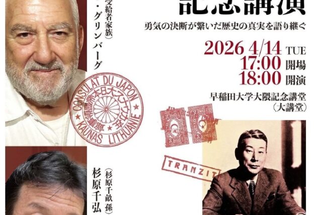 「NPO杉原千畝命のビザ」主催の講演会が開催されます。「杉原千畝が遺した命の証」~勇気の決断が繋いだ歴史の真実を語り継ぐ~日時:2026年4月14日 17:00開場 18:00開演場所:早稲田大学大隈記念講堂(大講堂)講師:ロバート・グリン...